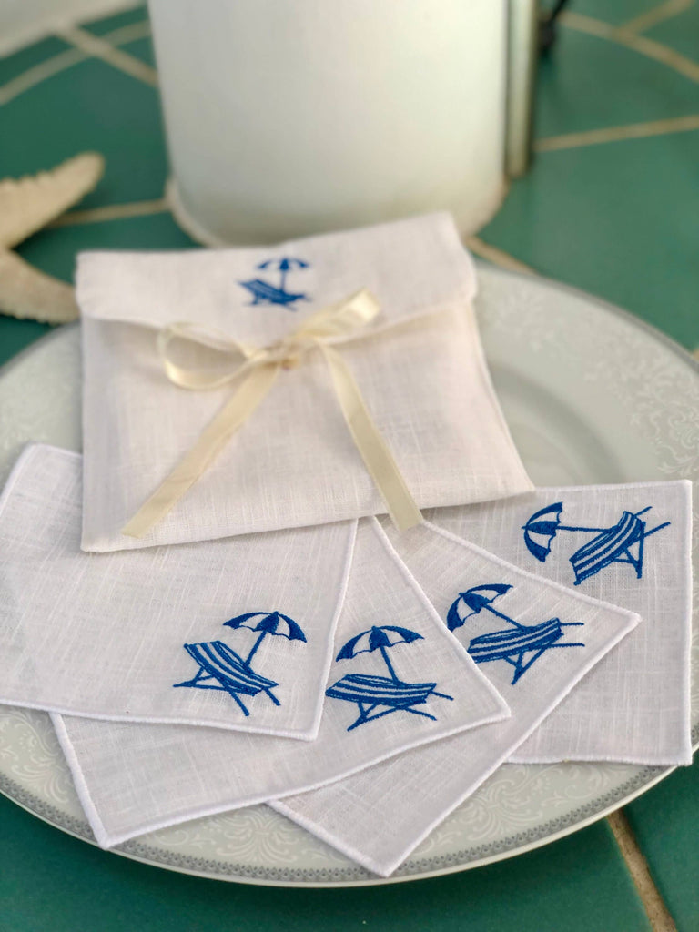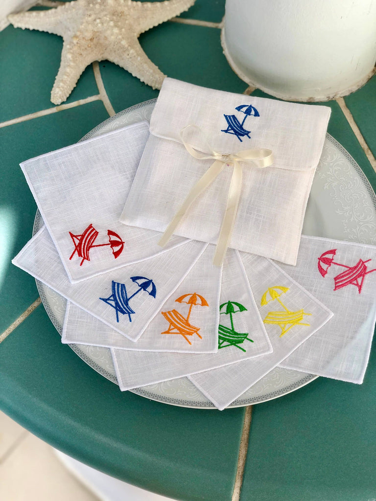 Set of 4/6 Embroidered Beach Umbrella Cocktail Napkins: Set of 4 napkins